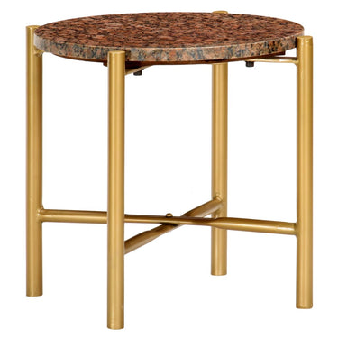 Dit tafeltje is gemaakt van echt steen met marmeren textuur en een sterk ijzeren frame met een gepoedercoate afwerking waardoor hij stabiel en duurzaam is. Het biedt een stabiel en veilig oppervlak voor het plaatsen van drankjes, vazen, fruitschalen en andere ornamenten. Deze bijzettafel is eenvoudig schoon te maken met een vochtige doek.
