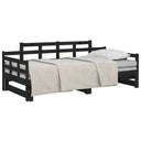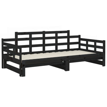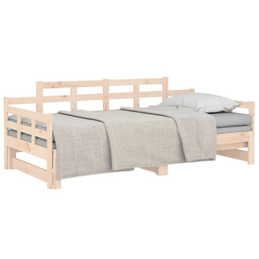 Deze houten slaapbank is ideaal als er onverwachts gasten blijven slapen, terwijl hij overdag een comfortabele zitplaats biedt.