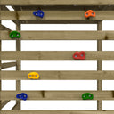 - Geïmpregneerd hout: dit tuinspeeltoestel is gemaakt van onder vacuüm geïmpregneerd grenenhout. Massief grenenhout is een prachtig, natuurlijk materiaal. Grenenhout heeft rechte nerven en de noesten geven het een kenmerkende, rustieke uitstraling. Impregneren is een conserveringsproces dat wordt uitgevoerd met behulp van autoclaven. De drukbehandeling verhoogt de weerstand tegen rotting en het weer.