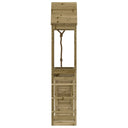 - Geïmpregneerd hout: dit tuinspeeltoestel is gemaakt van onder vacuüm geïmpregneerd grenenhout. Massief grenenhout is een prachtig, natuurlijk materiaal. Grenenhout heeft rechte nerven en de noesten geven het een kenmerkende, rustieke uitstraling. Impregneren is een conserveringsproces dat wordt uitgevoerd met behulp van autoclaven. De drukbehandeling verhoogt de weerstand tegen rotting en het weer.
