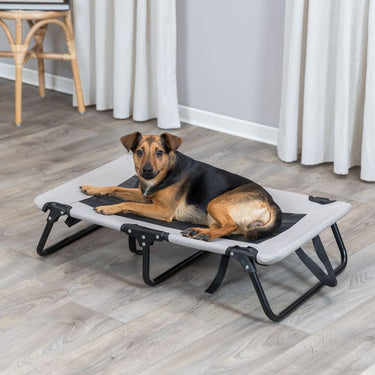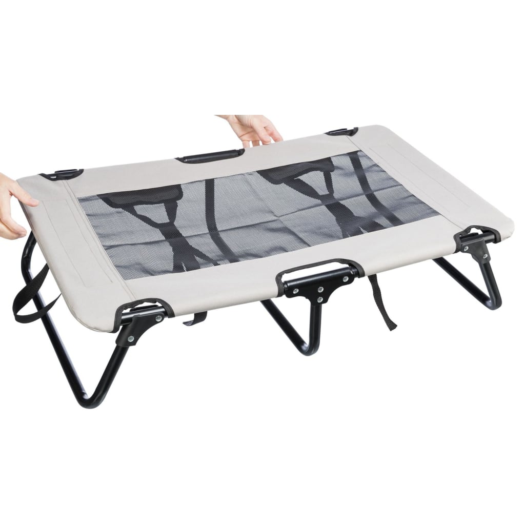 - Fijne materialen: het hondenbed heeft een stabiel, gepoerdercoat metalen frame. De bovenkant is van uitstekend Oxford polyester gemaakt. Dit zorgt ervoor, dat je huisdier lang van zijn loungeruimte kan genieten.