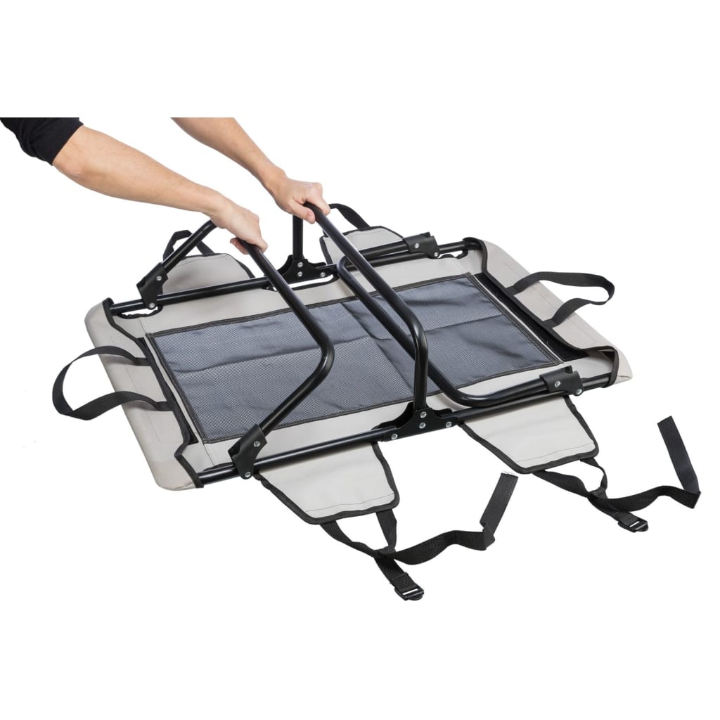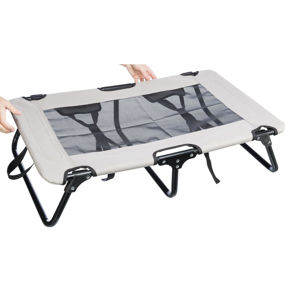 - Opvouwbaar en ruimtebesparend op te bergen: je kunt het huisdierenbed bovendien meenemen wanneer je onderweg bent, omdat het gemakkelijk in en uit te klappen is. Dankzij de handgrepen is het heel eenvoudig te transporteren.
