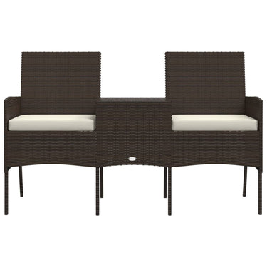 Deze poly rattan 2-zits tuinbank met tafeltje combineert stijl met functionaliteit en wordt de blikvanger van je tuin of je terras.