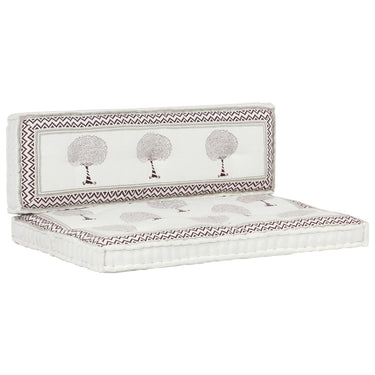 De tuinpalletkussenset bevat een zitkussen en een rugkussen.