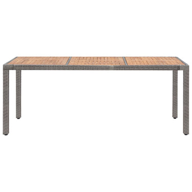 De tuintafel is gemaakt van weer- en waterbestendig PE-rattan wat hem makkelijk schoon te maken, slijtvast en geschikt voor dagelijks gebruik maakt. Het gepoedercoat stalen frame maakt hem erg stevig en duurzaam. Dankzij de lichtgewicht constructie is hij makkelijk te verplaatsen. Het tafelblad is gemaakt van massief acaciahout met een natuurlijke olieafwerking, dit is een natuurlijk hardhout wat weerbestendig en erg duurzaam is.