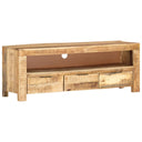De stereokast is gemaakt van massief ruw mangohout, een tropisch hardhout dat veel gewicht kan dragen. Het hout is ook goed bestand tegen slijtage, waardoor het meubel stabiel en duurzaam is. Dankzij het vakmanschap en de mooie houtnerf is elk meubelstuk uniek en net iets anders dan de rest. Dit meubel heeft een kabeldoorvoer, 1 open vak en 3 lades, waardoor er voldoende ruimte is om je spullen georganiseerd en binnen handbereik te houden.