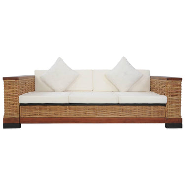 Dankzij het echte rattanmateriaal is de bank gemakkelijk schoon te maken, slijtvast en geschikt voor dagelijks gebruik. De bank heeft een stevig houten frame, dat erg duurzaam en stabiel is. De dikke zit- en rugkussens zijn erg comfortabel en wasbaar dankzij de verwijderbare hoezen. Bovendien dragen de brede armleuningen bij aan het zitcomfort.
