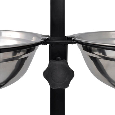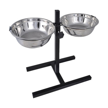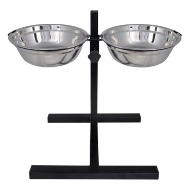 Deze dubbele voederbak is gemakkelijk te assembleren en biedt een stevige en duurzame constructie om uw huisdieren mee te voeren. De twee roestvrij stalen bakken zijn stevig vast gemaakt aan het buisvormige frame, dat een krasbestendige zwarte afwerking heeft. De bakhoogte kan gemakkelijk aangepast worden voor verschillende huisdieren of een opgroeiende pup of kitten. Het speciale sluitsysteem houdt de bakken in plaats waardoor ook verspilling en knoeien van de inhoud minder wordt. De voederbakken zijn gemakkelijk te verwijderen voor schoonmaak.