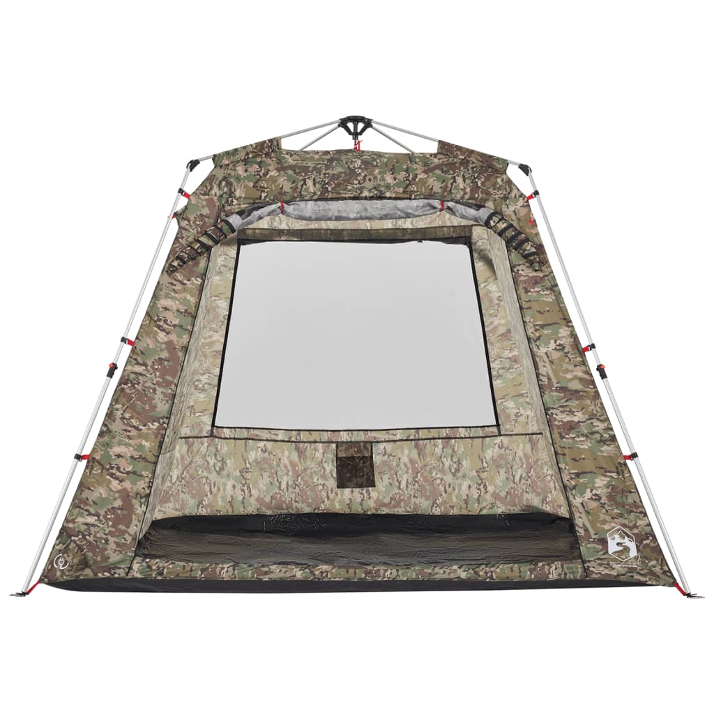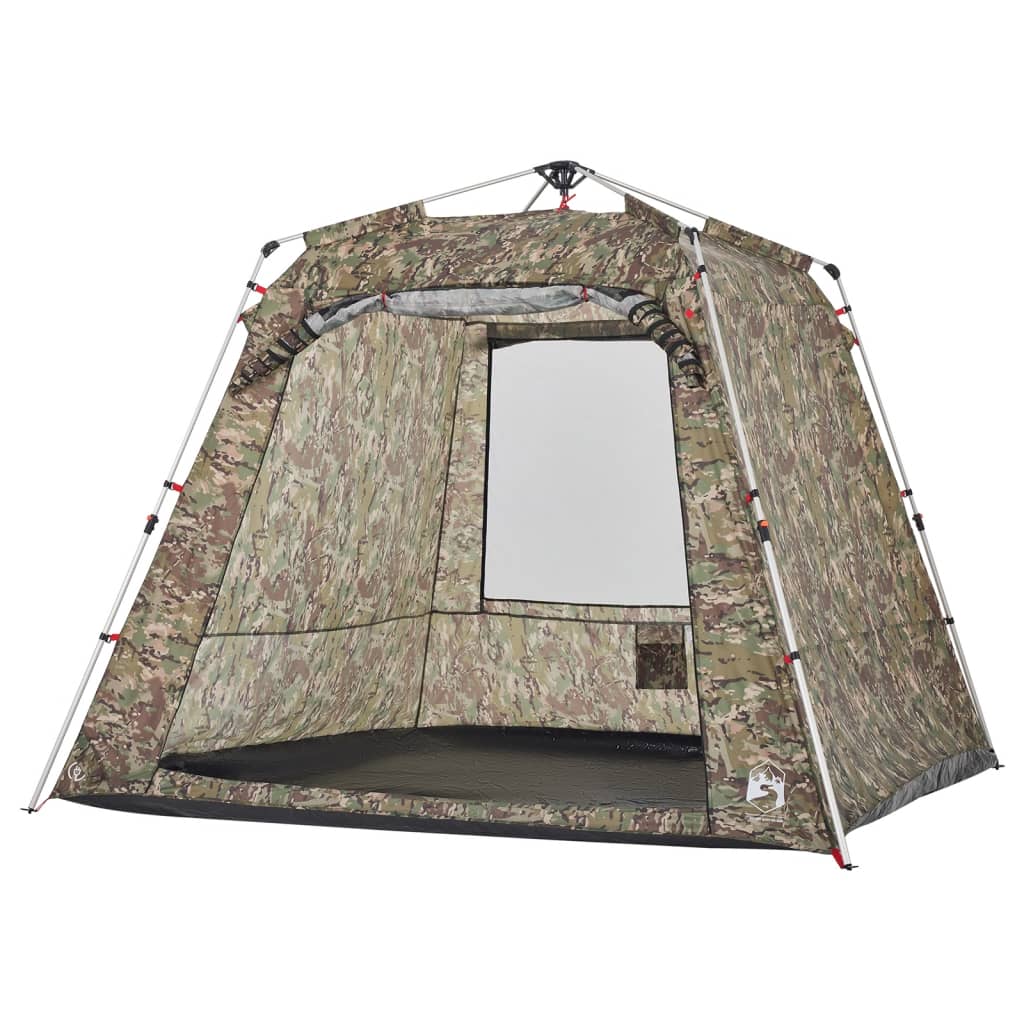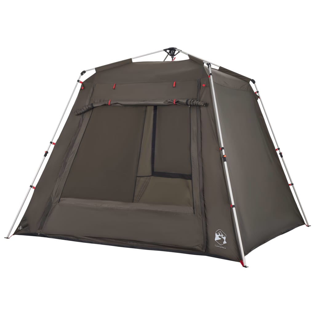 - Snelspansysteem: zet de tent moeiteloos op met het snelspansysteem! Leg de tent op de grond, schuif de voorgemonteerde stokken uit tot ze vastklikken en je bent klaar!