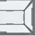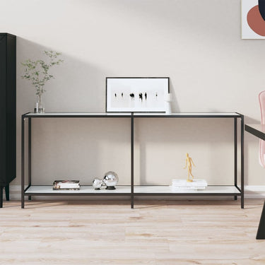 Deze bijzettafel is gemaakt van gehard glas en gepoedercoat staal, waardoor hij buitengewoon stevig en stabiel is. De bijzettafel is gemakkelijk schoon te maken met een vochtige doek. Bovendien biedt het schap extra opbergruimte.